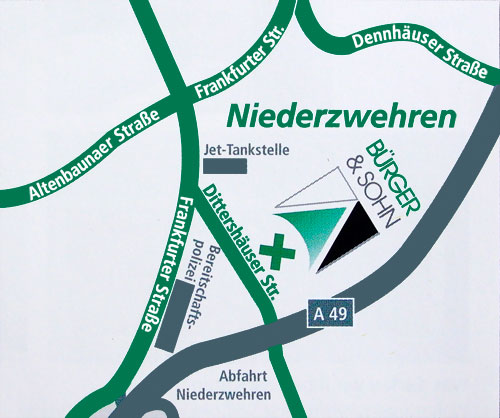 Frankfurter Straße , Richtung A 49 Marburg, in Niederzwehren hinter der Jet-Tankstelle links in die Dittershäuser Straße abbiegen .